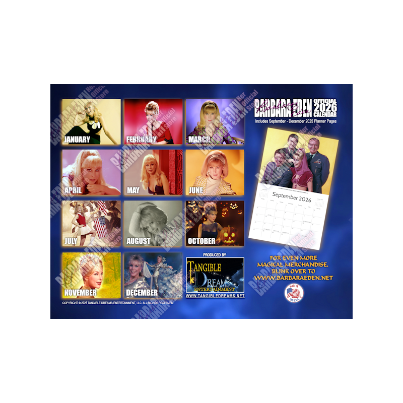 BarbaraEden.net is the exclusive retailer of the Autographed Barbara Eden 2026 Monthly Wall Calendar.